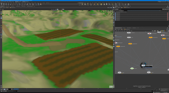 - Terrain - Heightfield, splat channels, mesh instance scattering/actor baking.